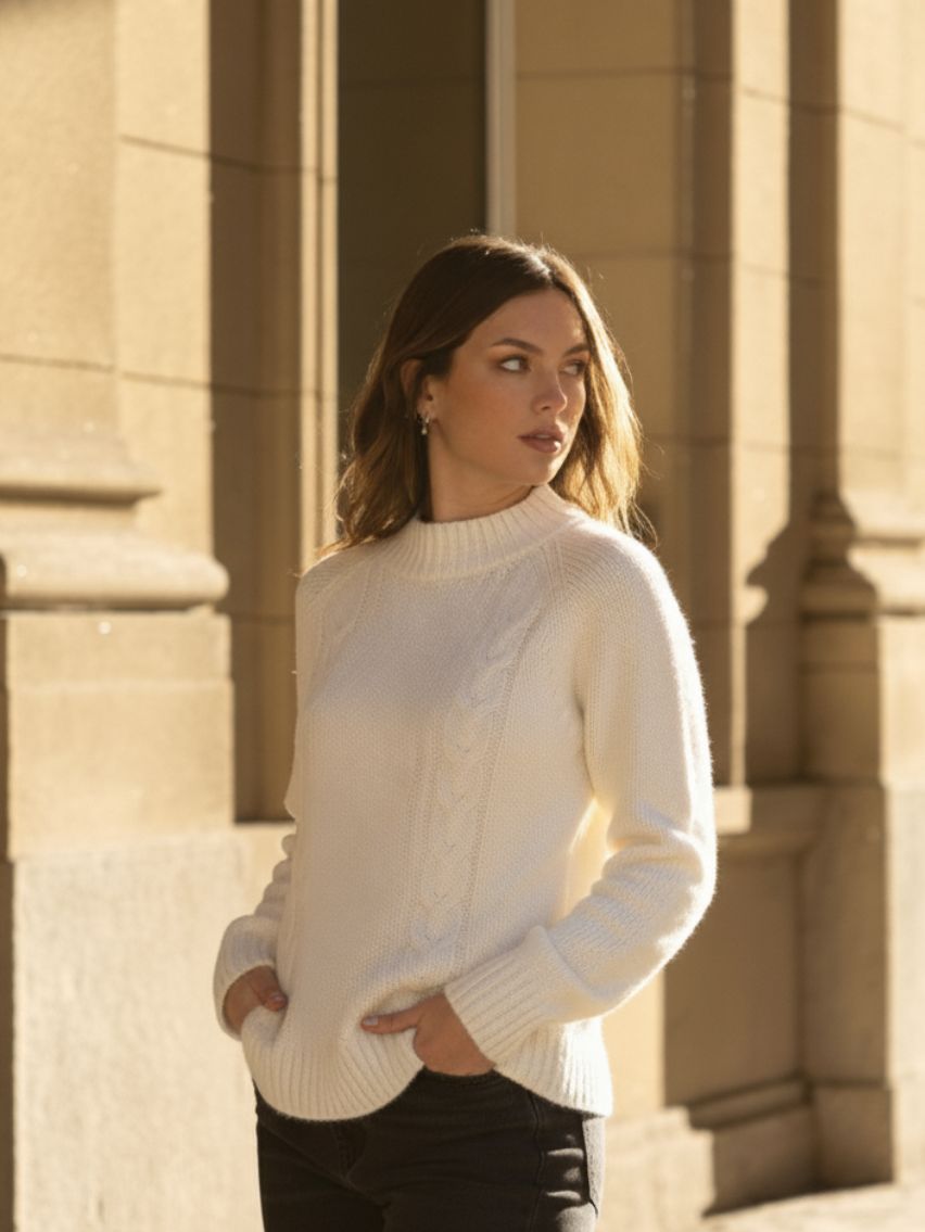 Artículo: 442Sweater con trenzas en delantera y escote media polera.