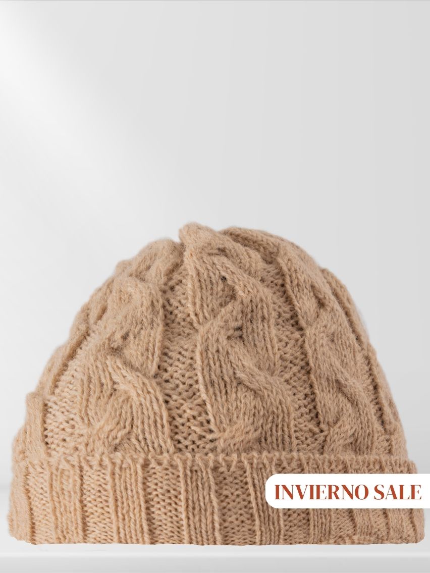 Gorro con trenzas en el cuerpo.