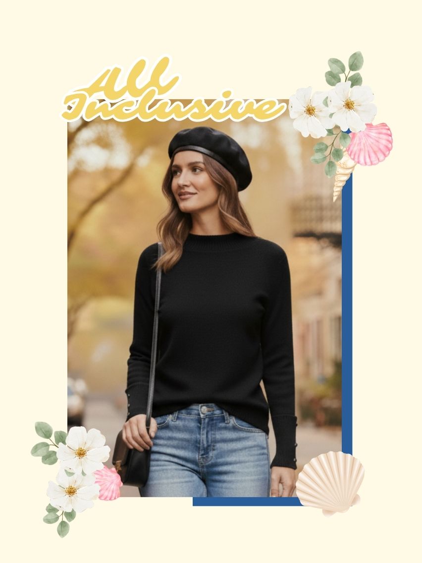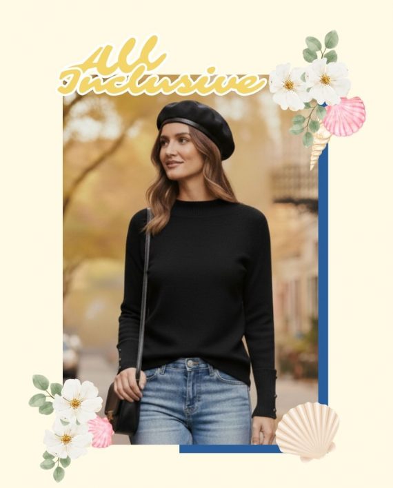Sweater cuello redondo, puños altos. Detalle de botones en manga.