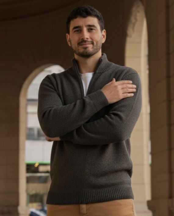 Artículo: 417Sweater con cierre en delantera y cuello media polera.