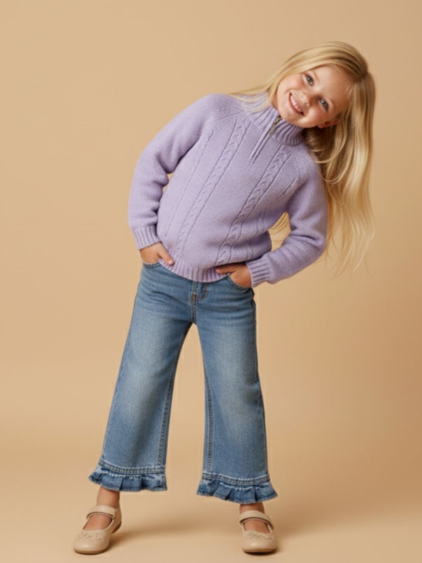 Artículo: 384Sweater con cierre en cuello medio polo y ochos en delantera.