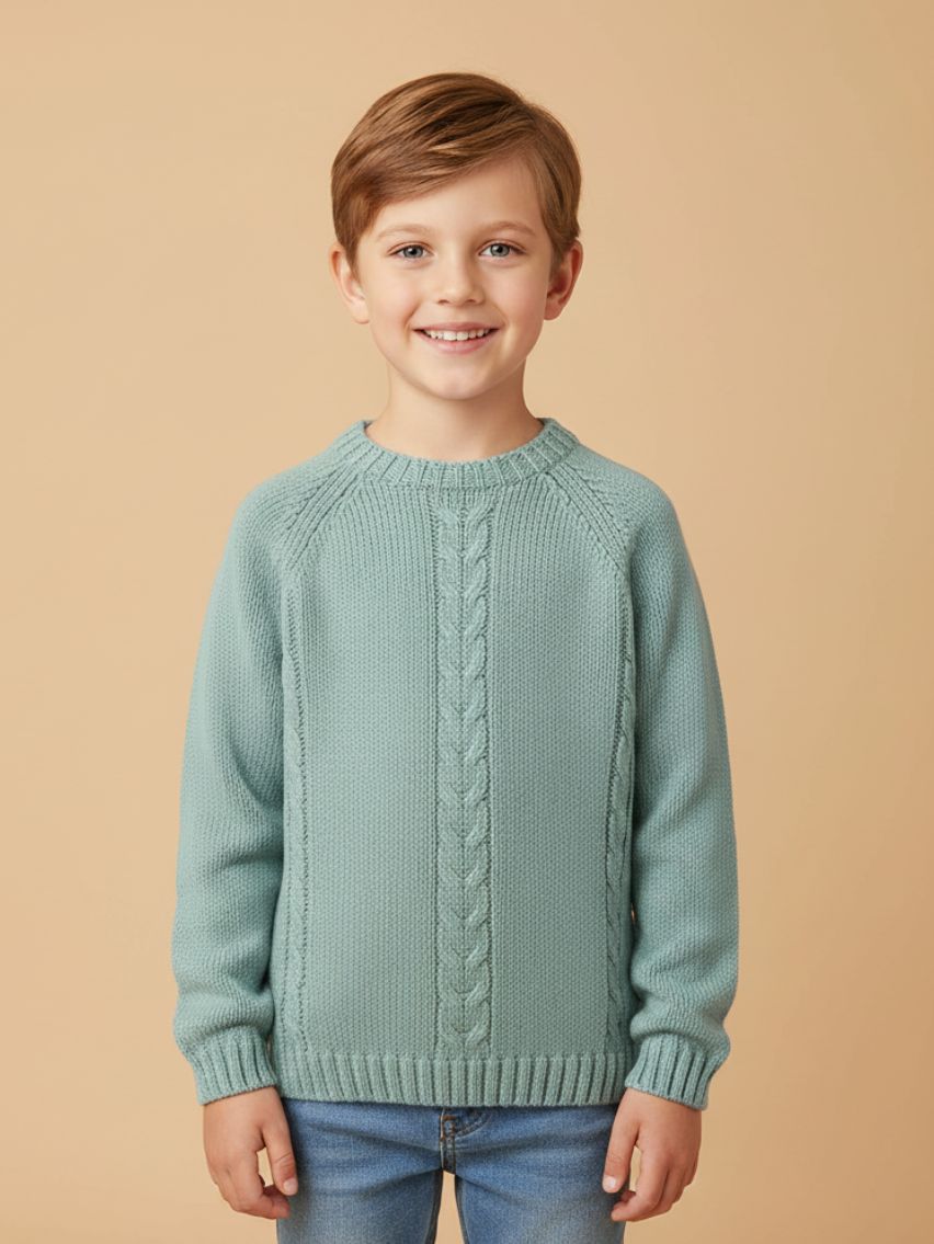Artículo: 381Sweater con manga ranglan. Delantera con trenzas y ochos .