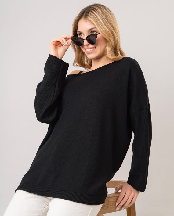 Artículo: 323Sweater oversie con escote bote y tajo en lateral .