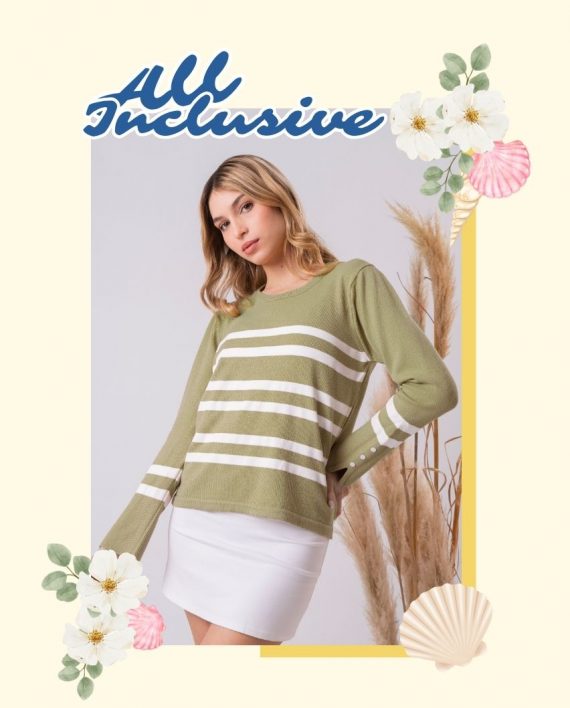Artículo: 325Sweater rayado con botones y tajo en puño .