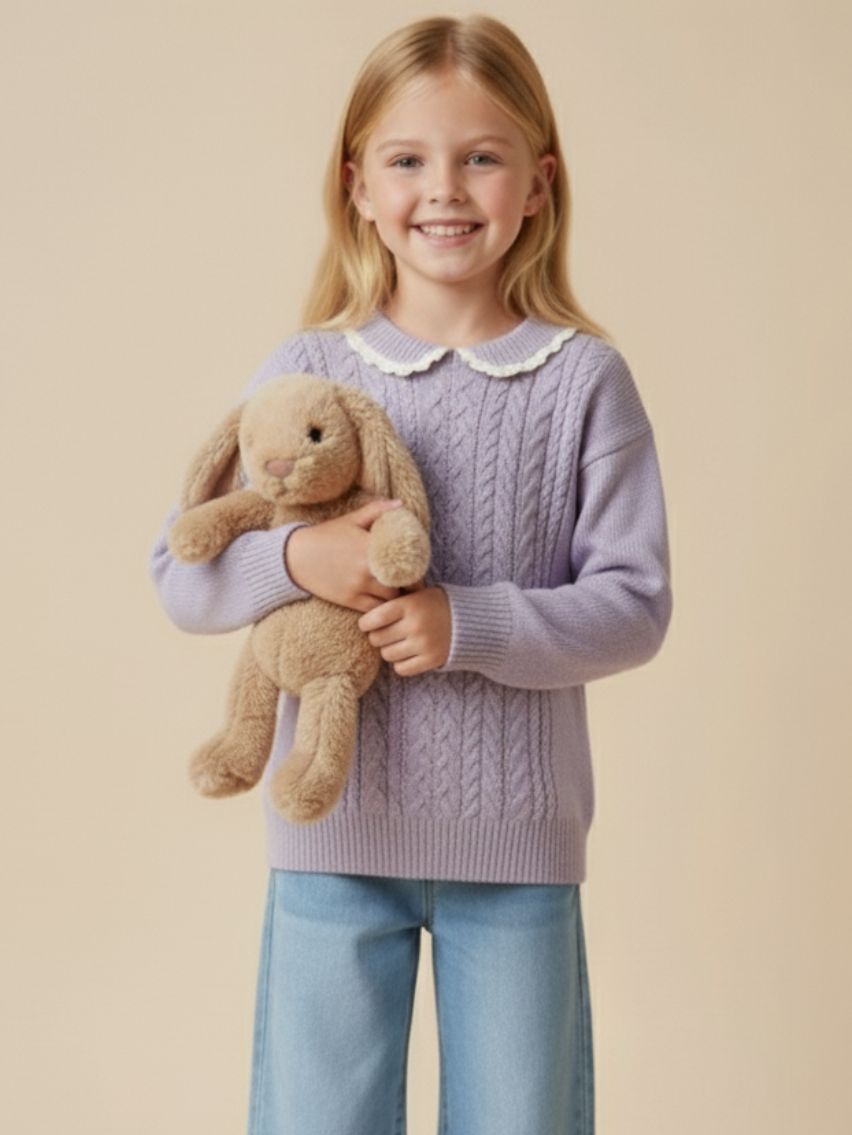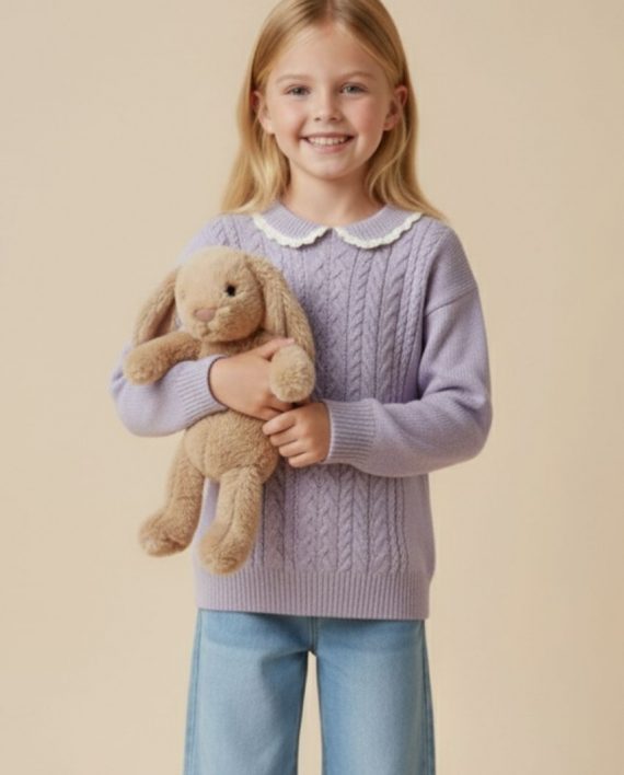 Artículo: 382Sweater con cuello aplicado festoneado combinado, con ochos en delantera