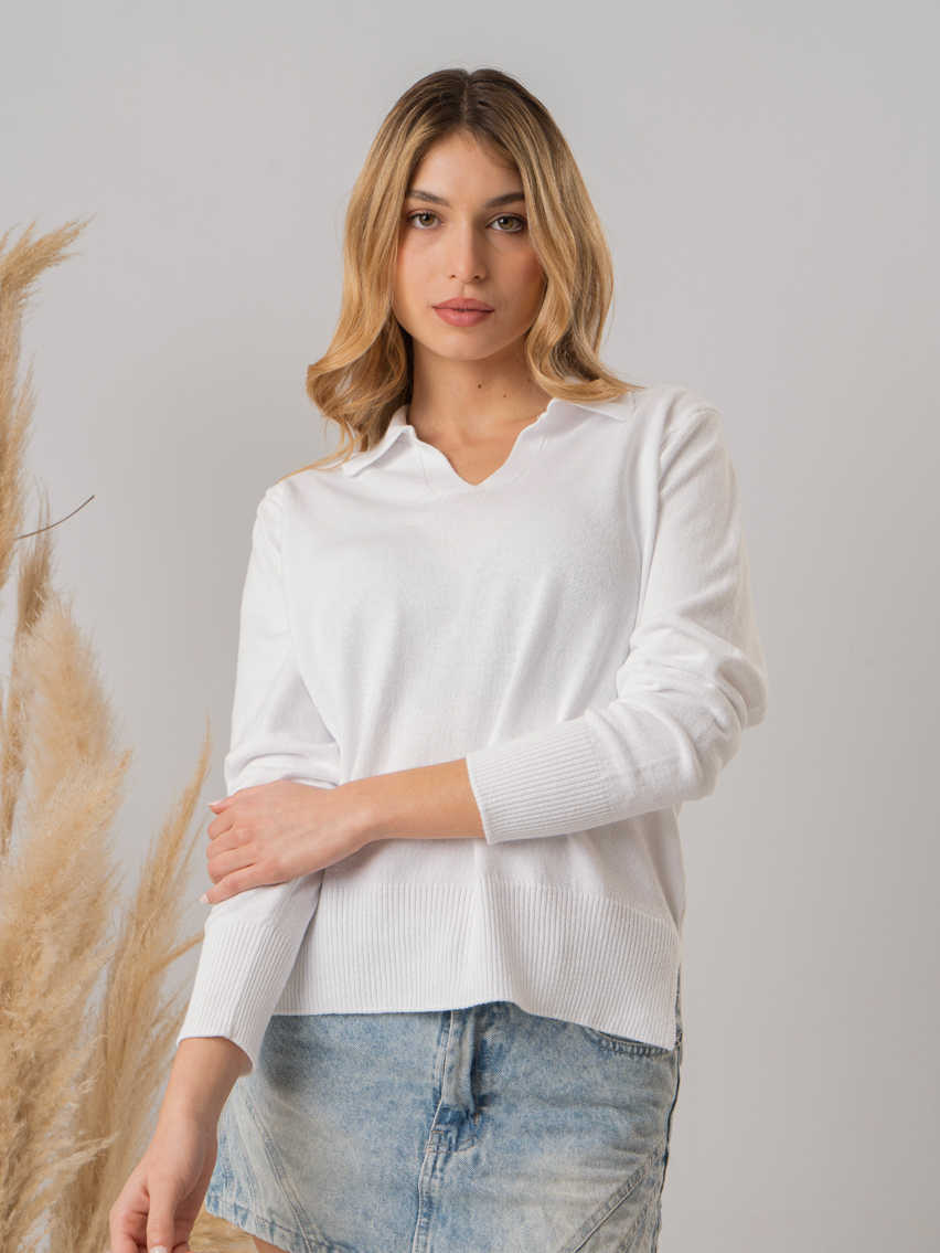 Artículo: 631Sweater con escote chomba y tajo en lateral.