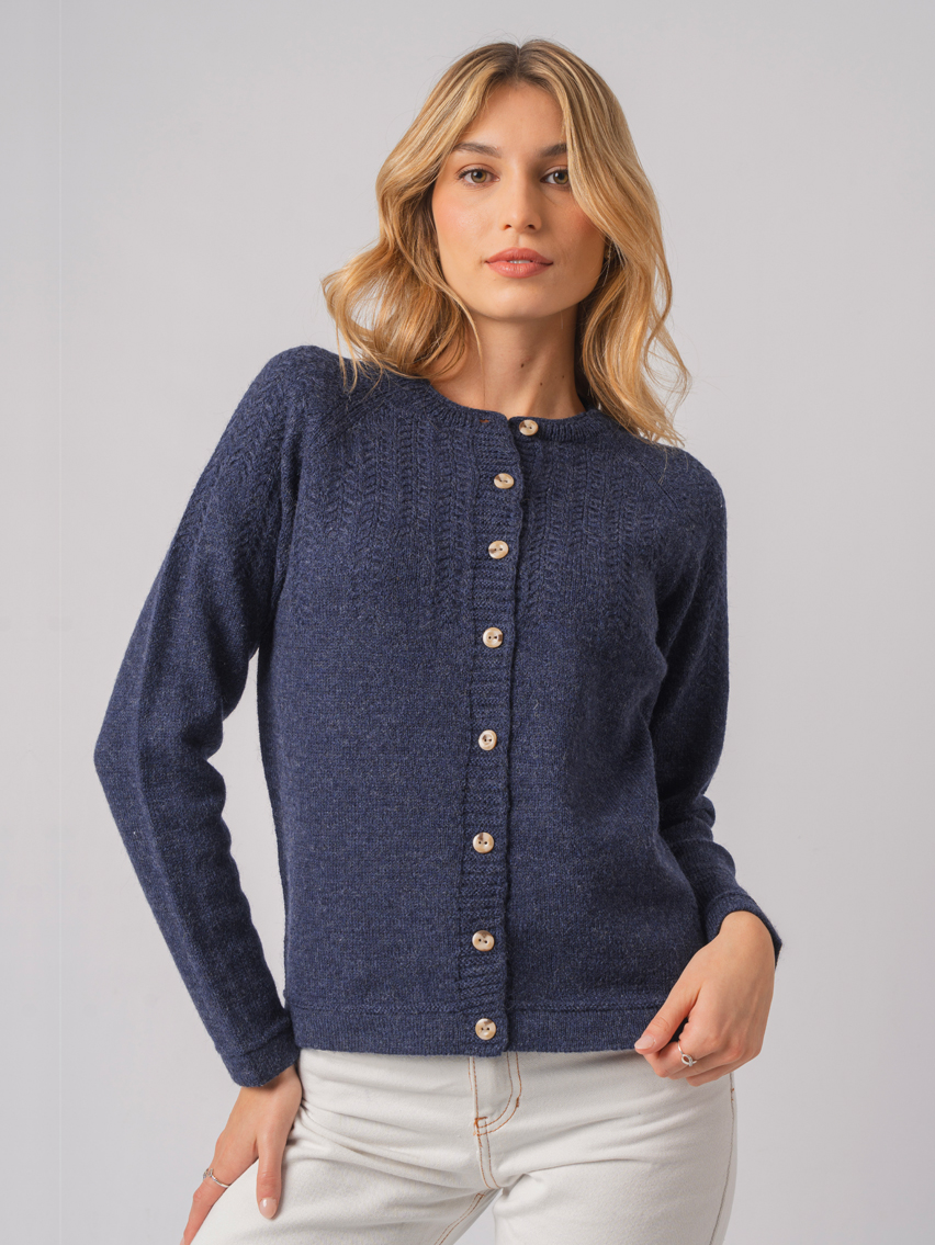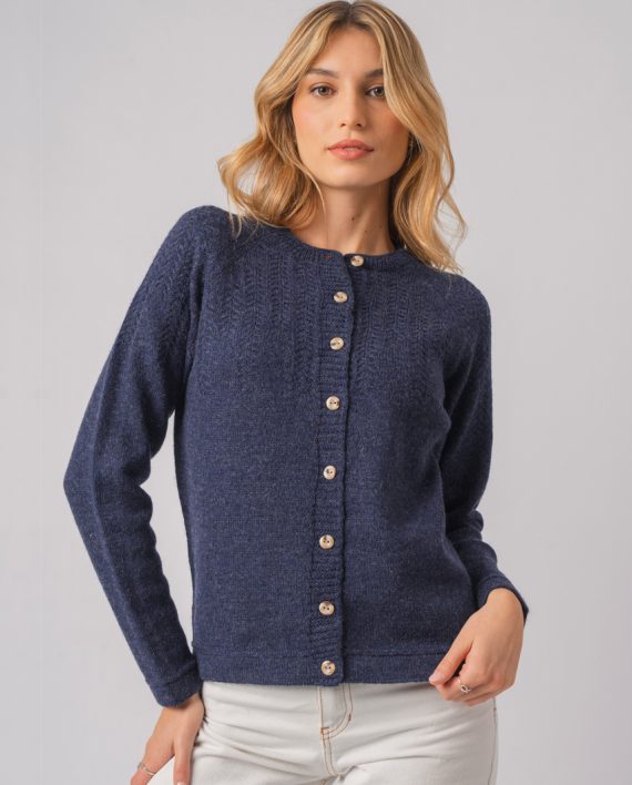 Artículo: 498Cardigan con punto fantasía en delantera y hombros.